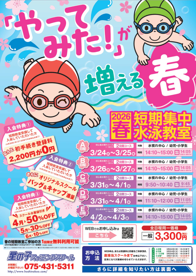 【一般生専用】春の短期集中水泳教室|星の子スイミング