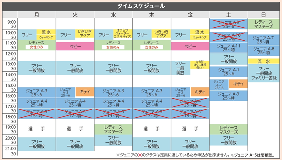 ※ジュニアの以下のクラスは定員に達しているため、申し込みができません
