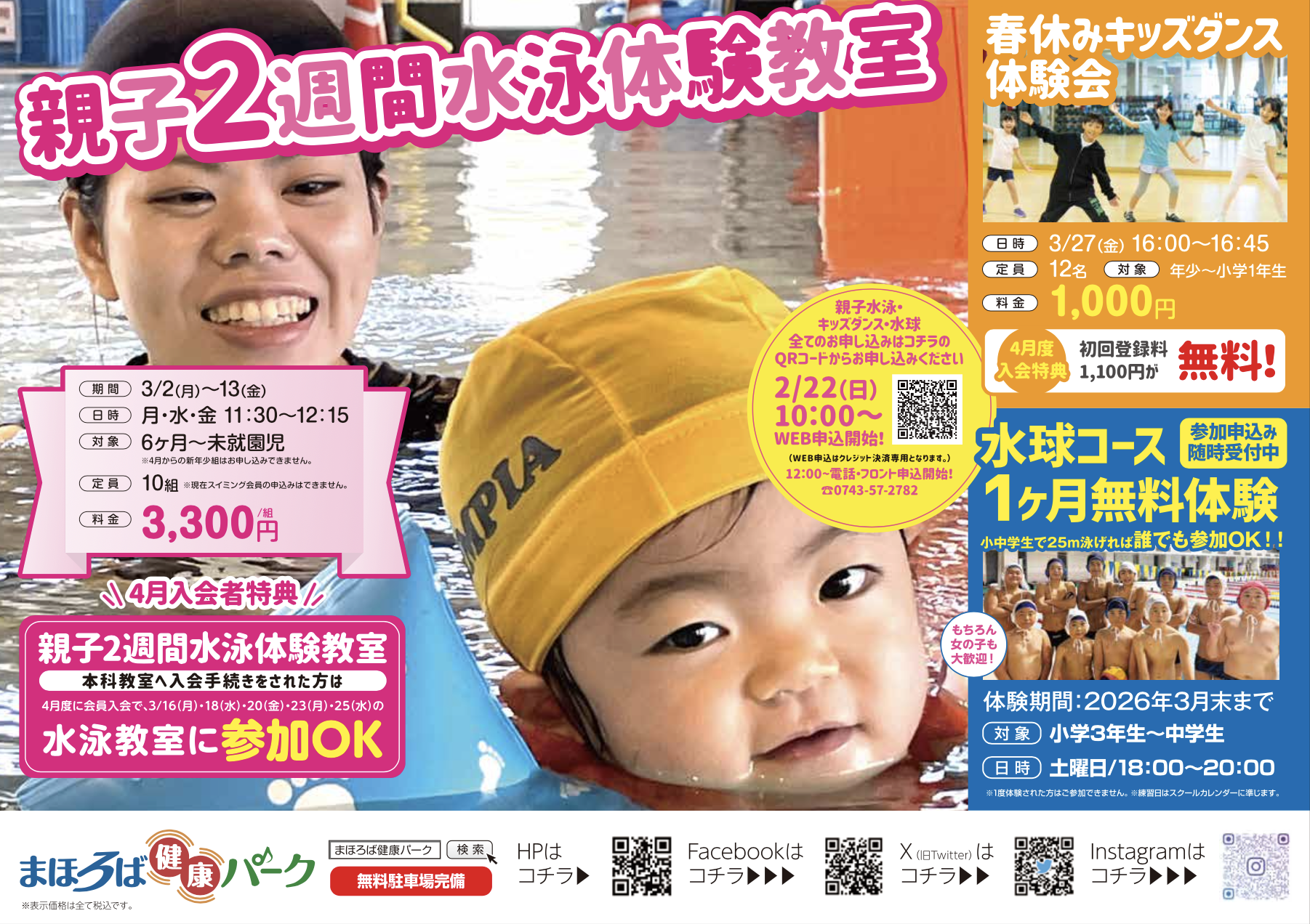 4月度に会員入会で、3/16(月)・18(水)・20(金)・23(月)・25(水)の水泳教室に参加OK!