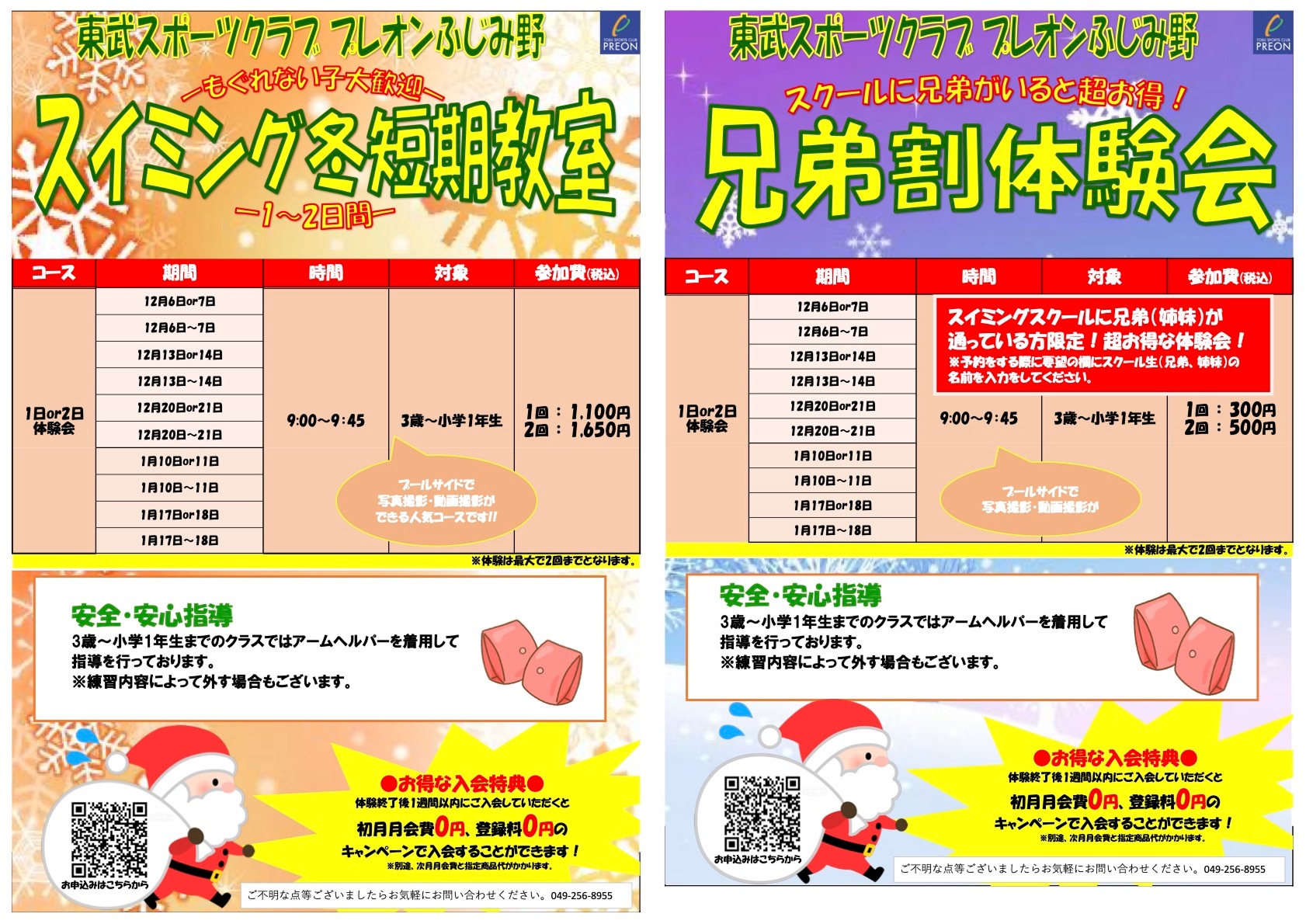 【一般】スイミング冬短期教室|東武スポーツプレオンふじみ野