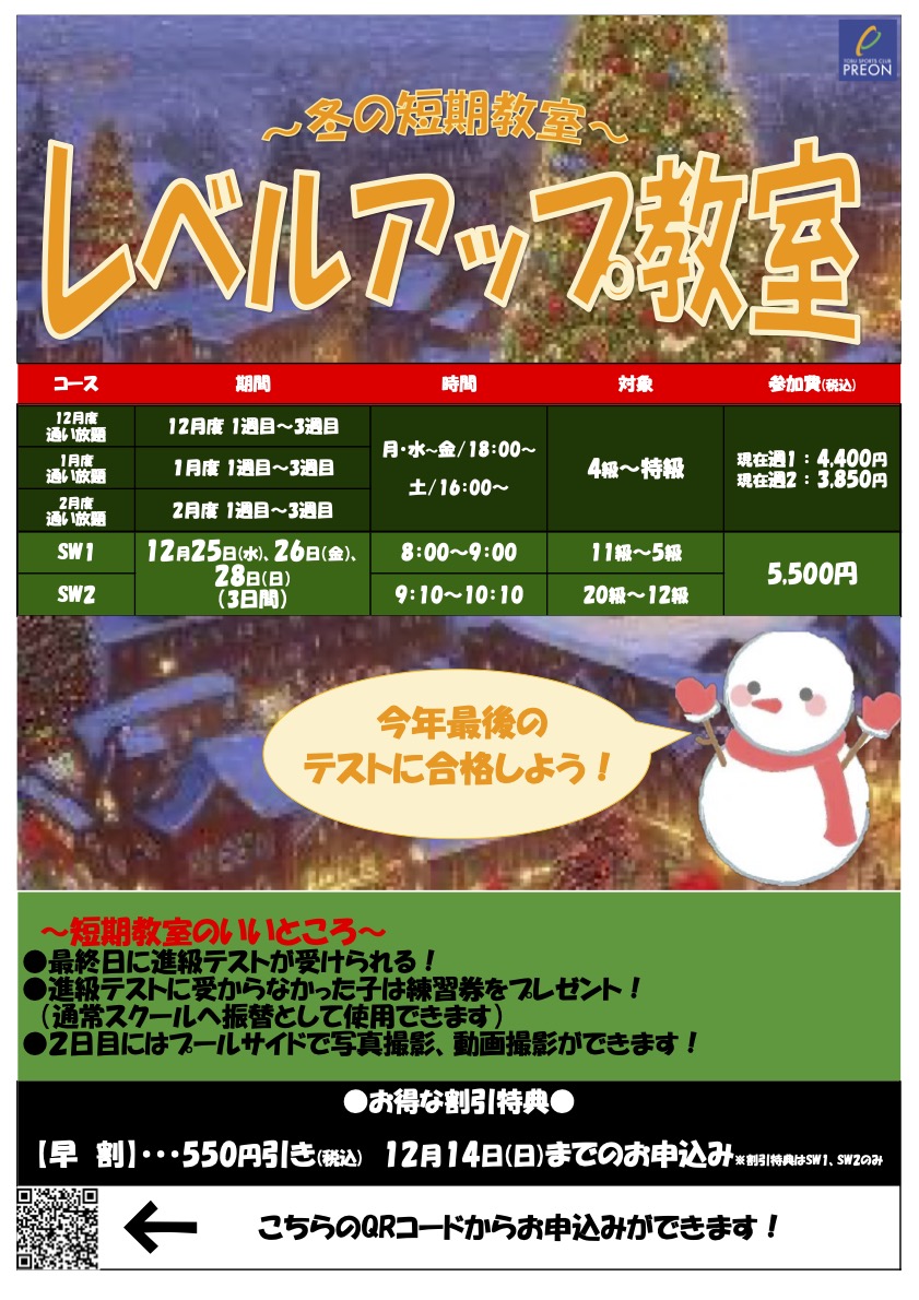 【会員】冬の通い放題短期教室|東武スポーツプレオンふじみ野