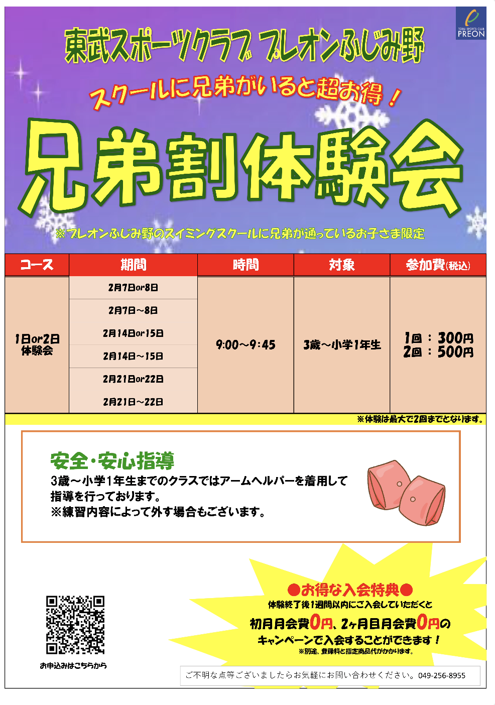 【一般】キッズスイミング兄弟割体験会|東武スポーツプレオンふじみ野