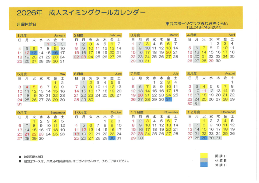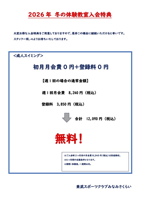 【一般】1月成人スイミングスクール体験|東武スポーツみなみさくらい