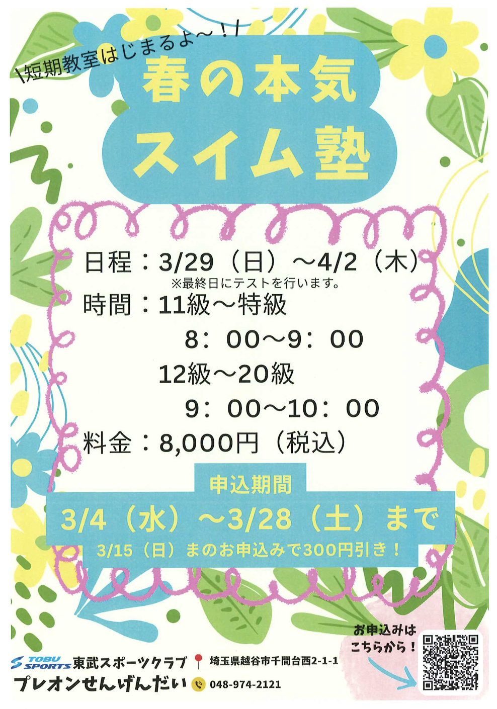 【会員】春の本気スイム塾|東武スポーツプレオンせんげんだい