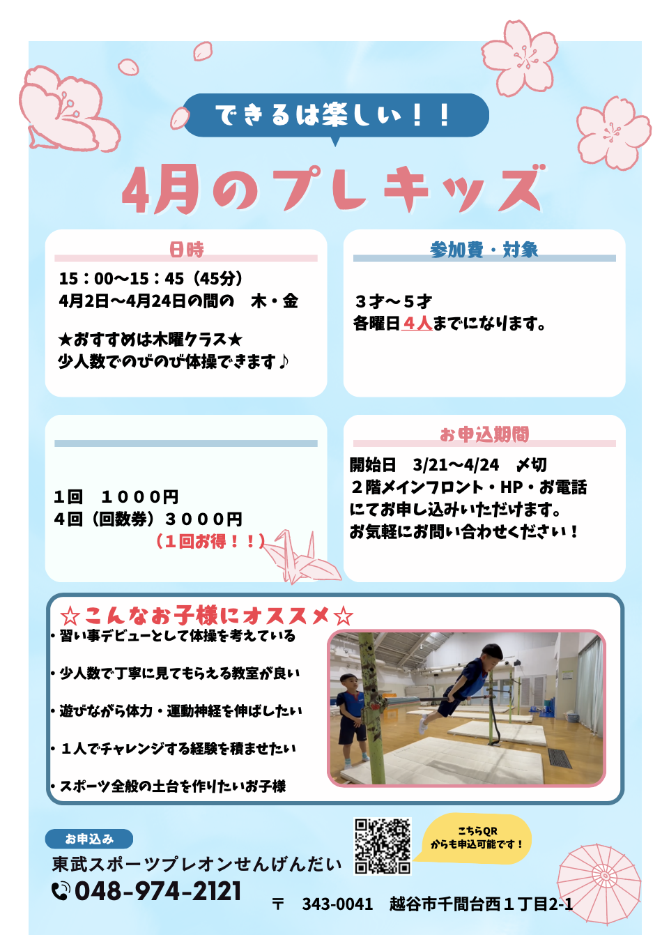 【4月】プレキッズ体操教室|東武スポーツプレオンせんげんだい